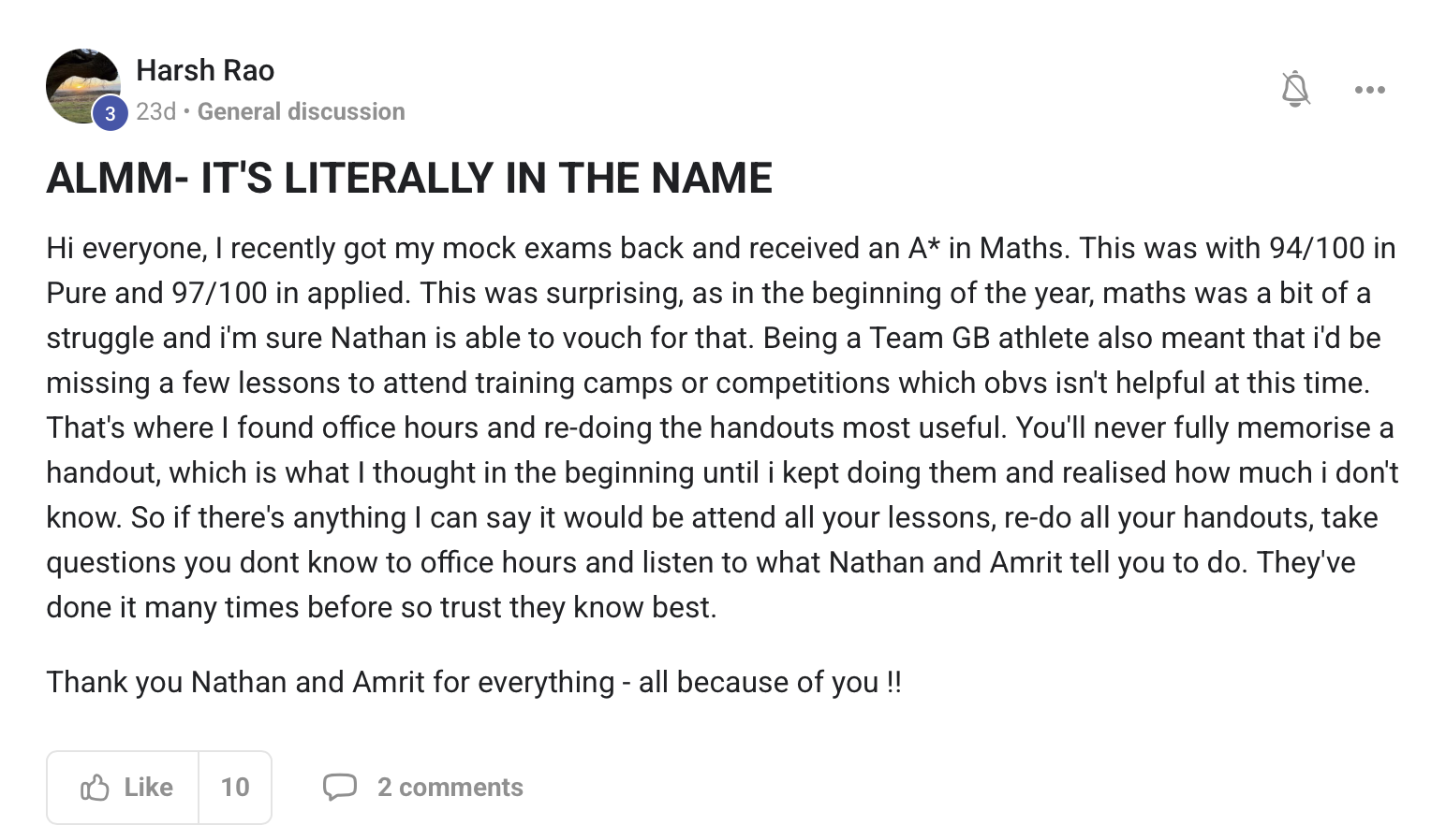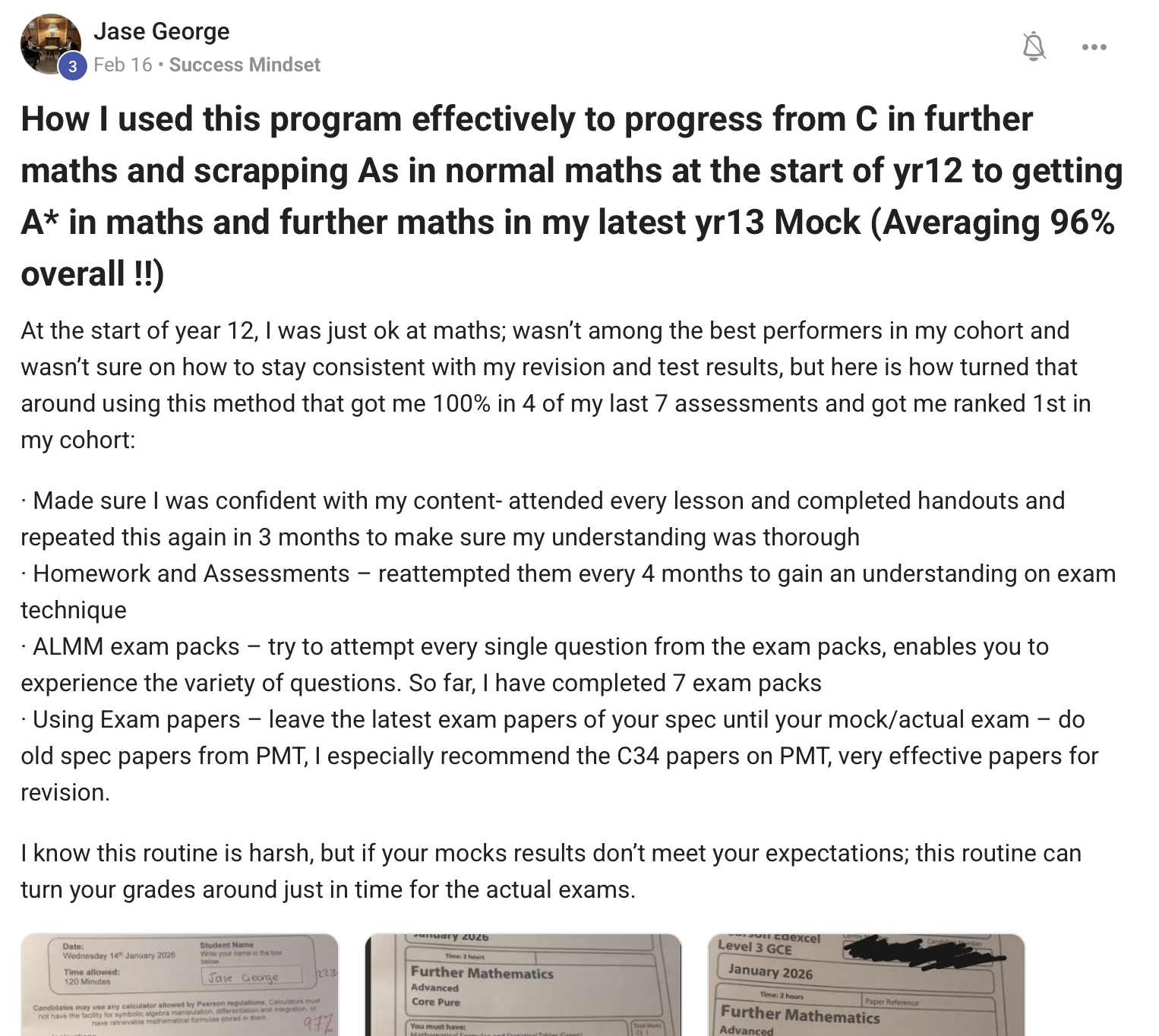 The students already inside ALMM are very clear about this. The biggest advantage of starting early is not chasing marks after the fact. It’s removing panic before it ever appears. Mocks don’t create problems, they expose them. Once results are back, time is tighter, confidence is lower, and every session feels reactive instead of planned.