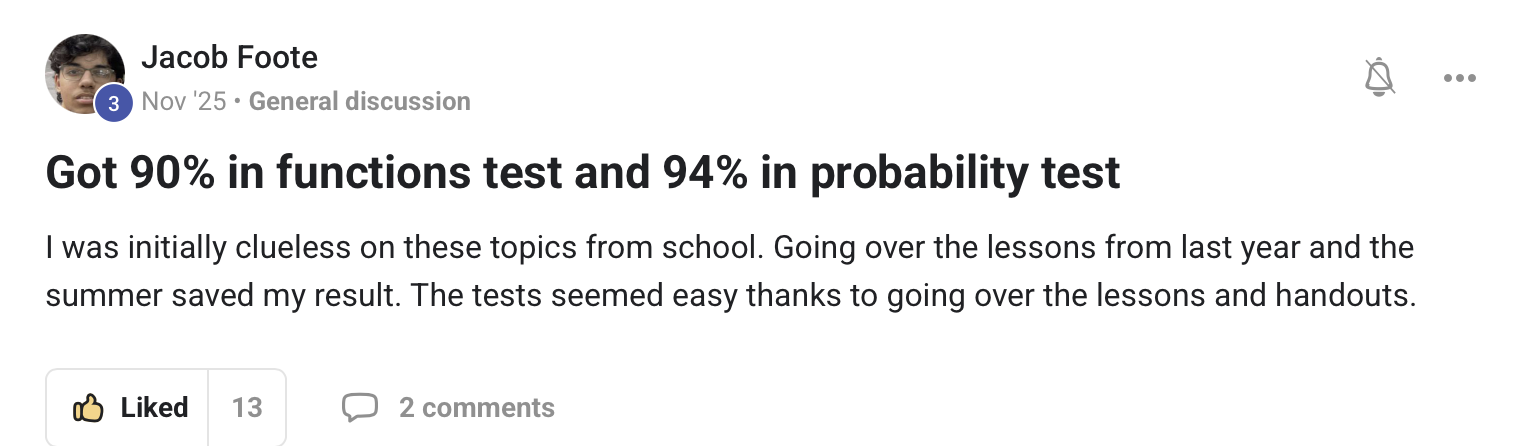 Students also have access to our full video library, including lessons from previous cohorts, so they can revisit any topic they’re struggling with at school at any time. On top of that, they can use 1:1 office hours or message support to clear doubts quickly, and we’ll provide additional exam-style questions so the understanding is properly reinforced.