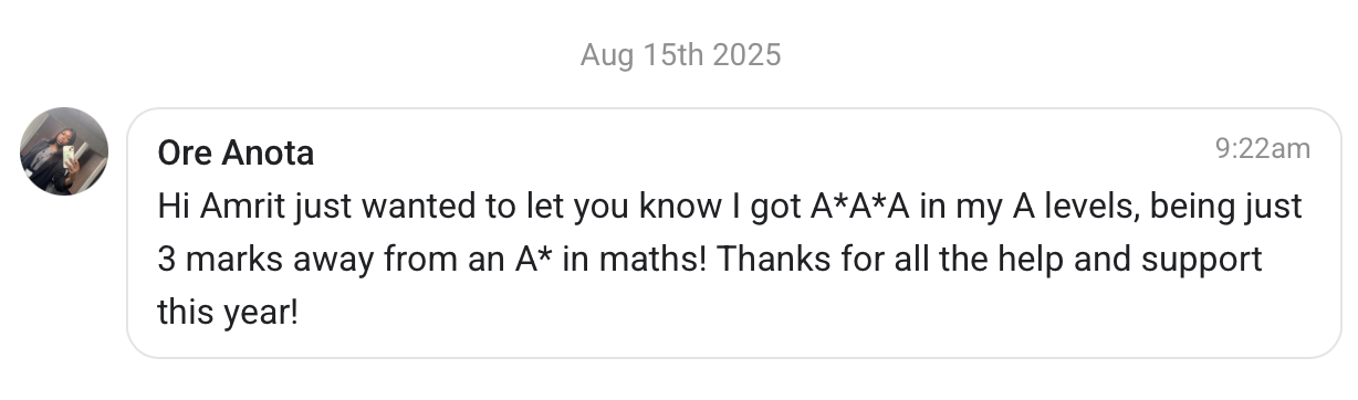 After working with us in year 12 & 13 Tanbir secured a solid grade A in A-Level Maths & got accepted into Medicine.